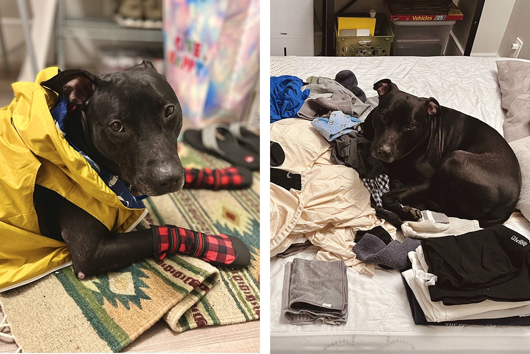 “He had never been on a leash before, so that was a really big hurdle for him,” says Nikki. “Basically, we had to teach him how to be a pet dog. We would put a collar on him, give him some treats, take it off or put the collar and leash on him, then give just a little bit of pressure, and then give him treats and take it off. It was really just baby steps toward all the things we kind of take for granted with pet dogs.”